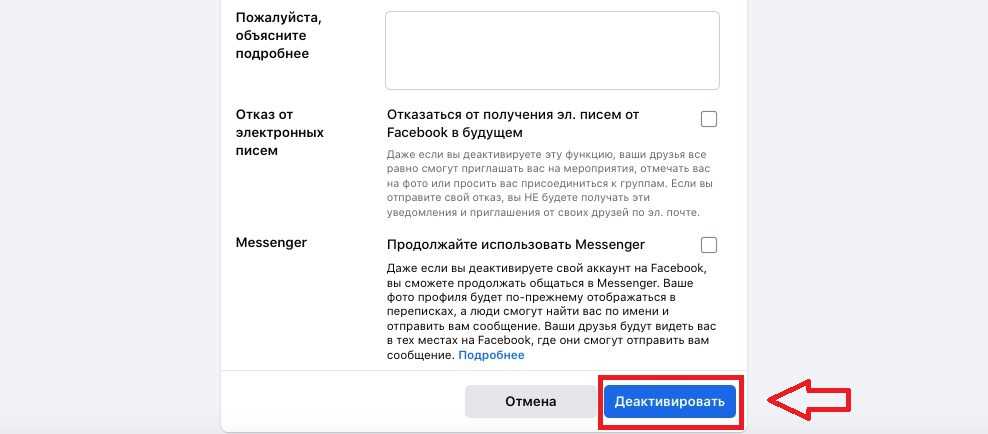 Но система просто так не отстанет от пользователя. На экране ещё раз появляется вопрос, уверенны ли вы в том, что хотите деактивировать свой аккаунт. После этого всплывёт список друзей, которые, возможно по вам будут скучать. Даётся перечень причин, по которым пользователь хочет распрощаться с социальной сетью. Тут надо выбрать что-то подходящее и отказаться от получения рассылки от Фейсбука по электронной почте. В последнем появившемся окошке нажимают на пункт Отключить сейчас.