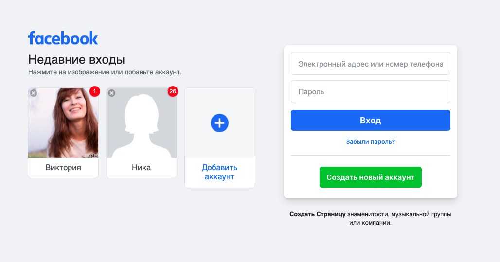 - Перейти на главную страницу Фейсбук и пройти авторизацию.