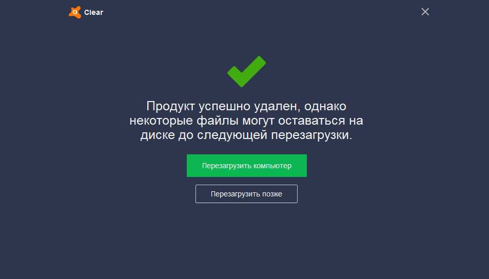 - После перезагрузки системы, антивирус Аваст будет полностью удален с компьютера.