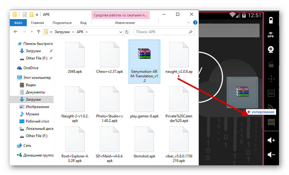 - Переместите ранее сохраненный файл АРК через «Проводник» Виндовс на мобильное устройство.