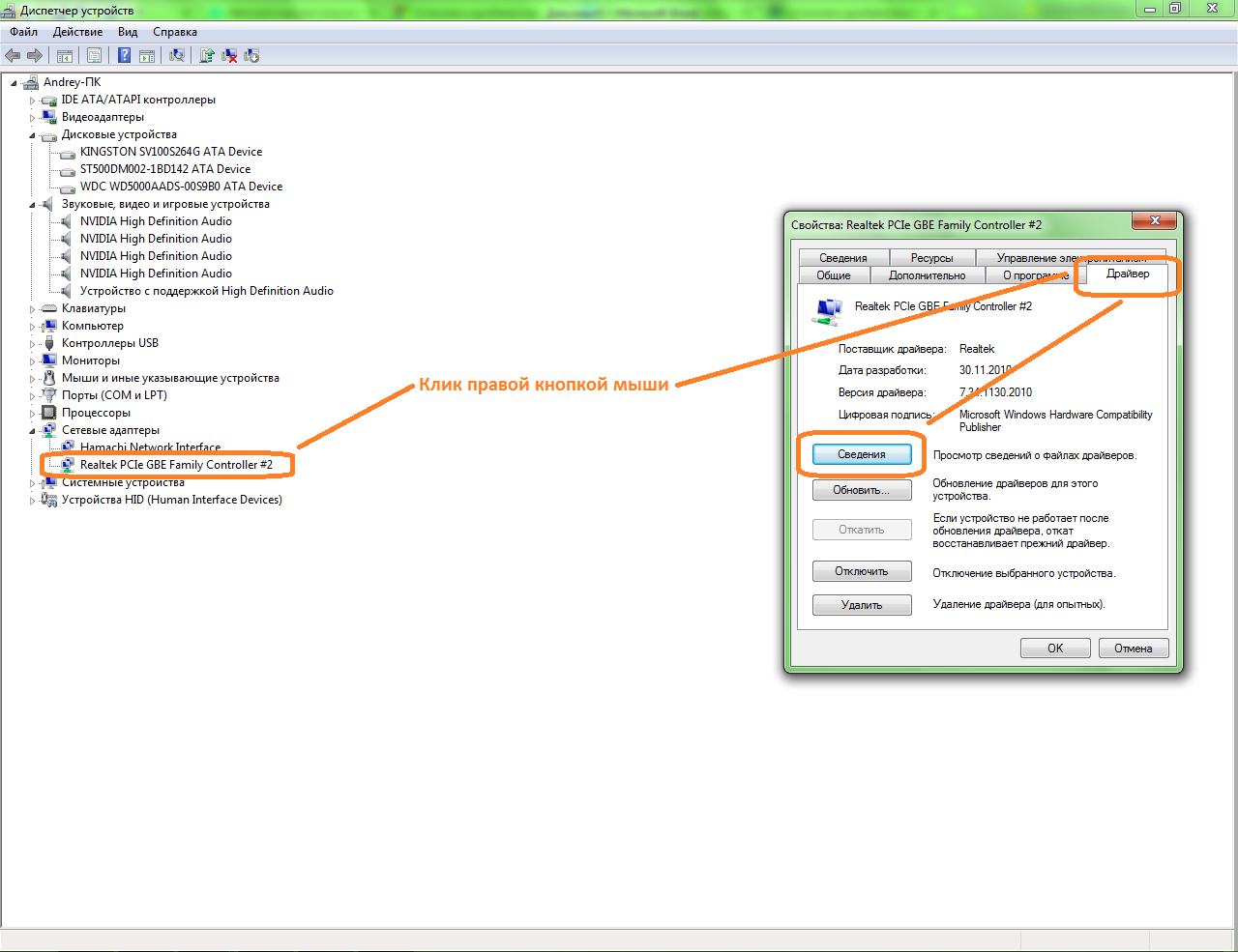 Например, нам нужно узнать id драйвера, которого нигде нет, выбираем правой кнопкой мыши драйвер и нажимаем свойство.