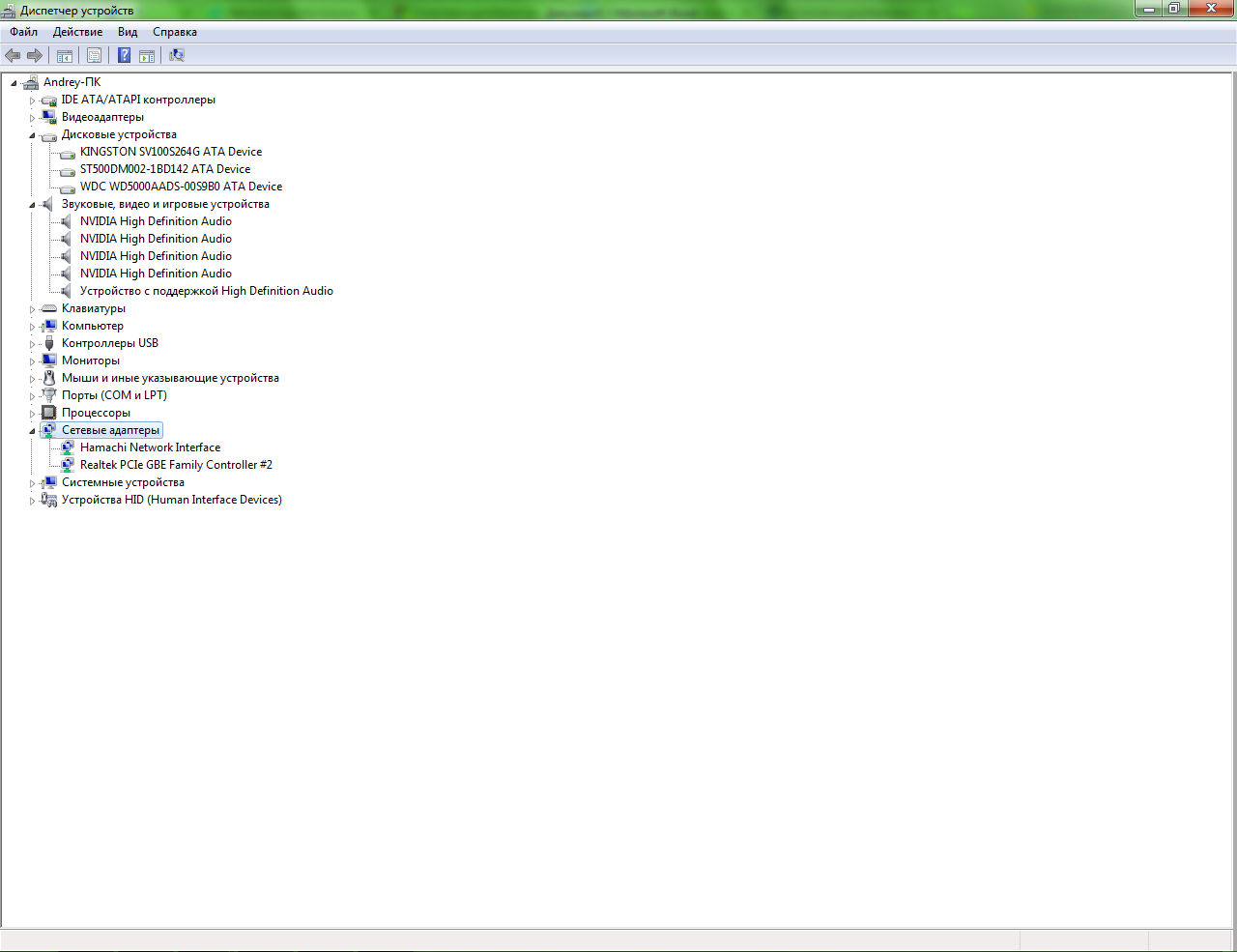А вот в «Сетевых адаптерах» пользователь может найти подключенные сетевые карты, а также беспроводные компоненты при их наличии. Собственно, сам «Диспетчер устройств» для примера: