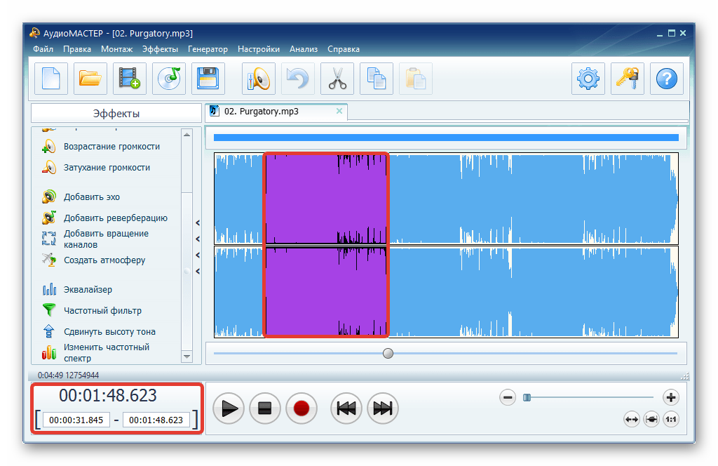 АудиоМАСТЕР может выполнять гораздо больше различных процессов, нежели предыдущие представители, и создание рингтонов — не основная его возможность. В данной программе присутствует настройка эквалайзера, пресеты звуковых атмосфер, набор эффектов и запись с микрофона.