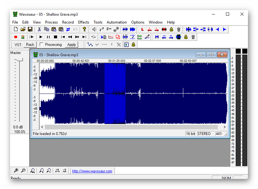 Данная программа позволяет обрабатывать, нарезать и работать с фрагментами аудиодорожек. С ее помощью также можно нормализовать звук, добавить эффекты и осуществлять запись с микрофона. Кроме этого доступно добавление затухания и регулировка громкости.