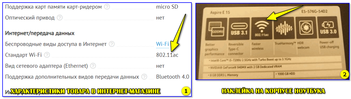 Обычно необходимые сведения размещаются в графе под названием Wi-Fi либо Wireless. В некоторых случаях после соответствующей фразы может стоять знак звёздочки в кавычках. Это означает, что функция устанавливается отдельно, сам пользователь может выбрать подходящий вариант после покупки ноутбука.
