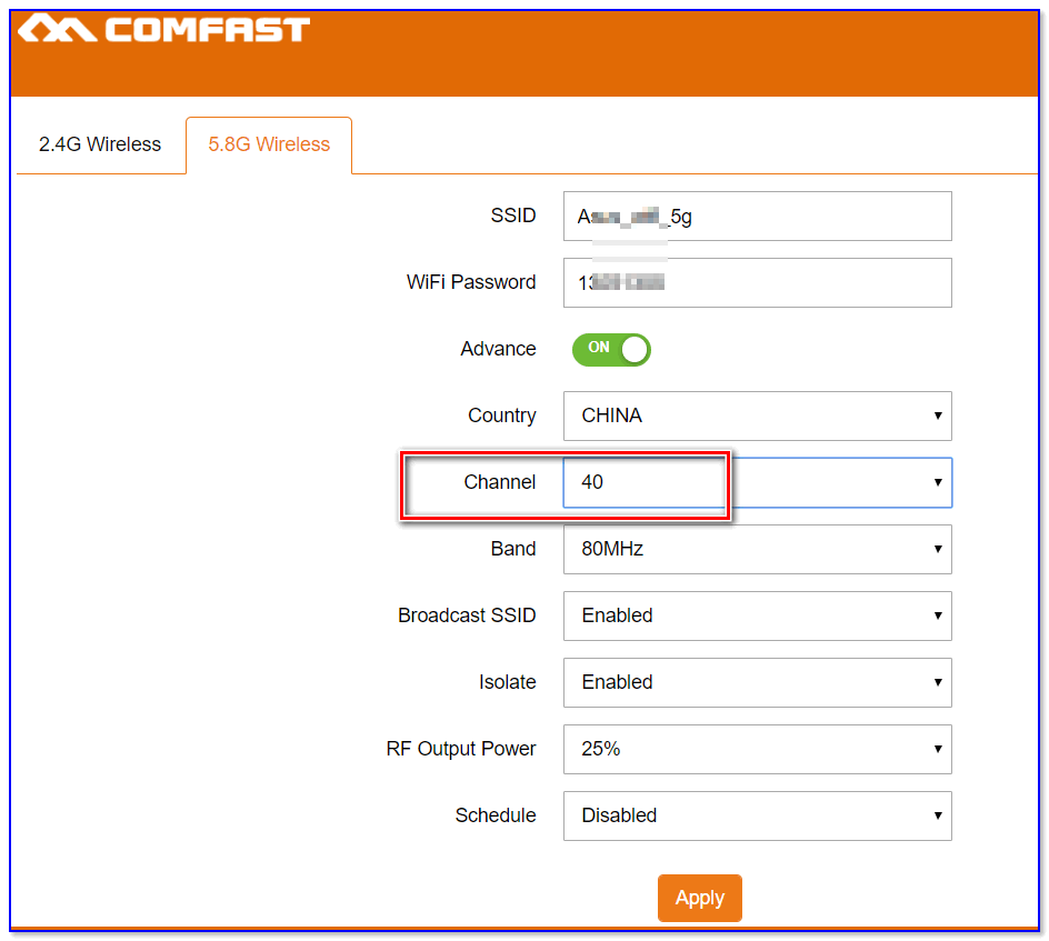 - Сменить канал. Рекомендуется выбрать 36, 40 или 44. Ну или выставить «Авто».