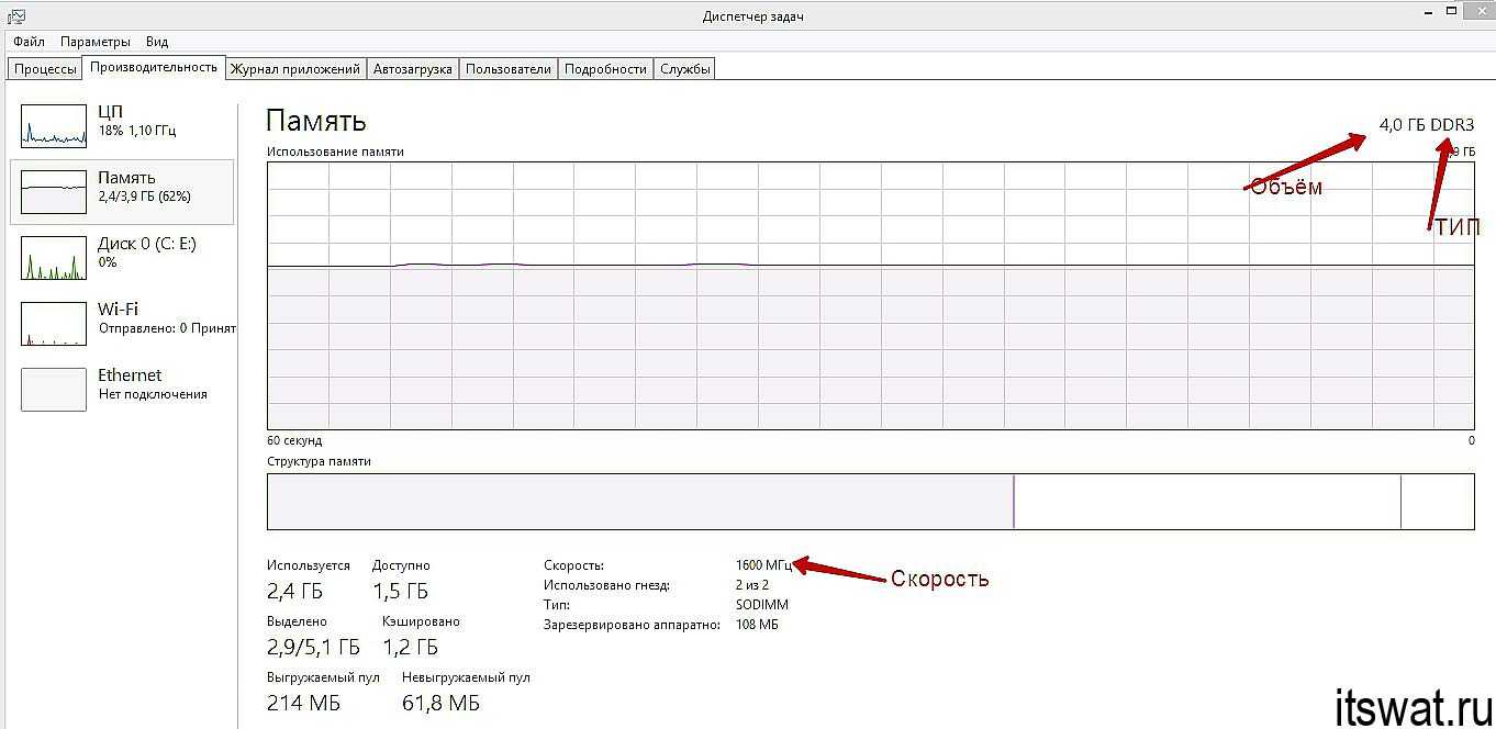 Друзья, чтобы узнать, какого типа ОЗУ установлена на вашем ПК, не надо быть гением или хакером. Есть очень лёгкие способы, актуальные для всех современных версий Windows (10, 8, 7). Самый простой из них – обратиться к «Диспетчеру задач». Напомню, он запускается так: