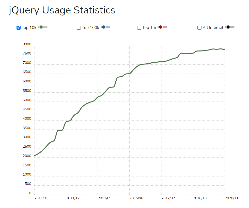 Зная версию jQuery на вашем сайте, вы можете проверить, обновлена ли библиотека или нуждается в апдейте