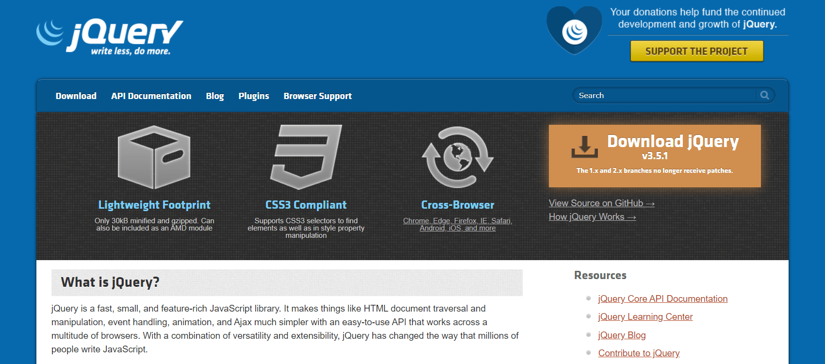 Это бесплатная JavaScript-библиотека с открытым исходным кодом. Она заметно упрощает веб-разработку, позволяя писать меньше кода, чем на ванильном JavaScript.