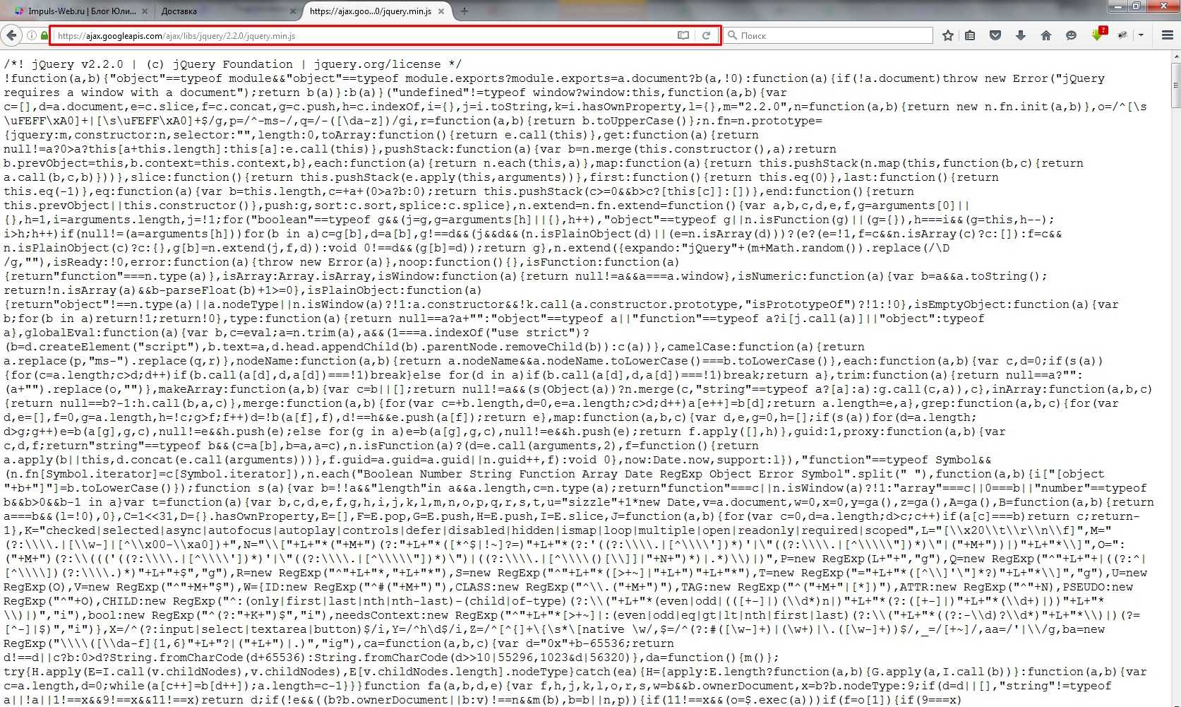 - Если версия jQuery устарела, необходимо обновить исходный код сайта.