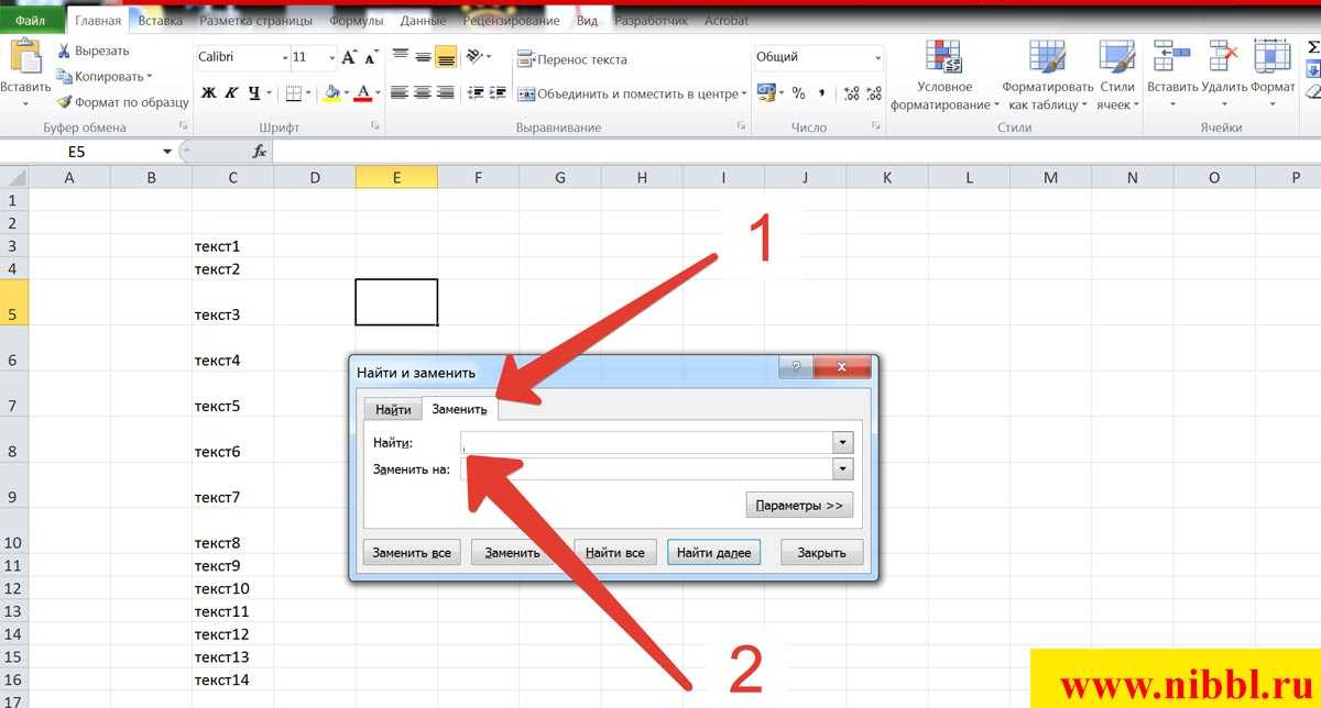 Удалить пустые строки с помощью функции «Найти и заменить»