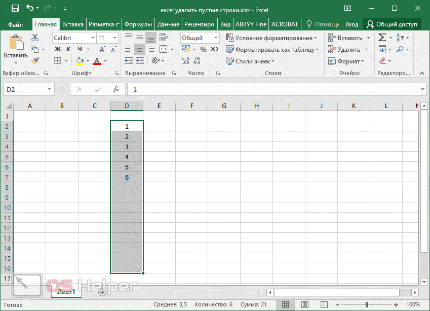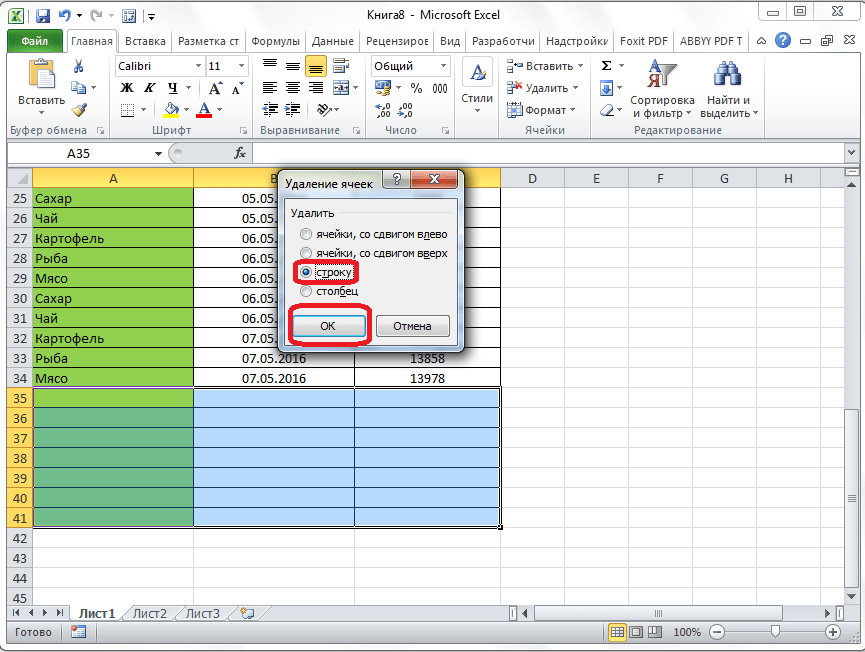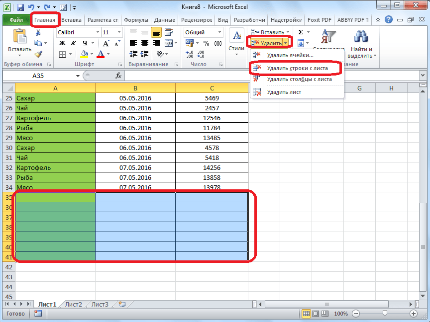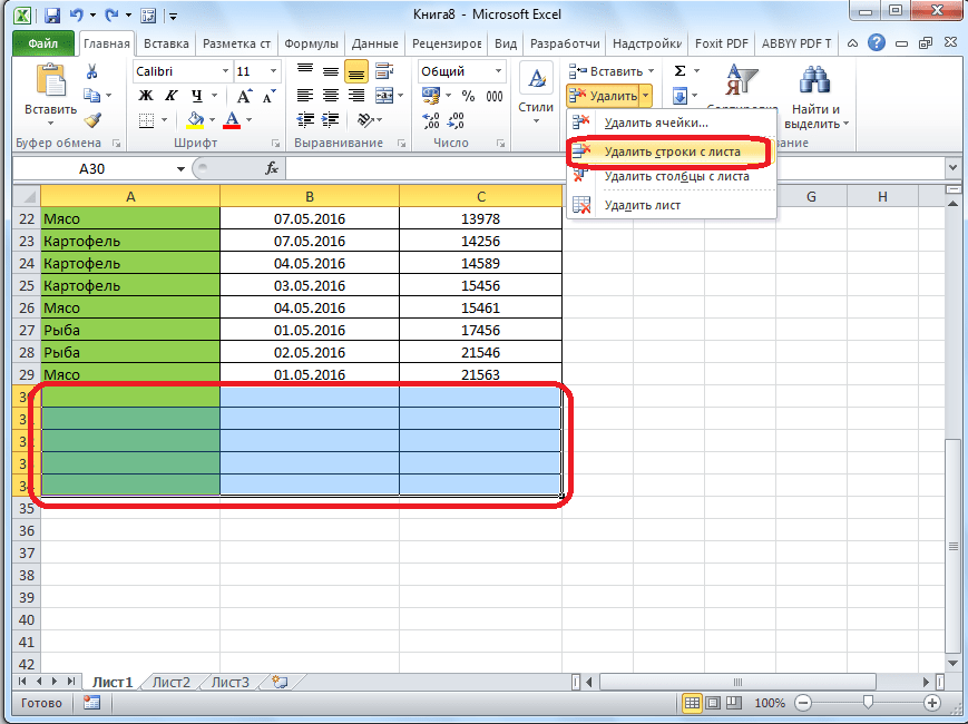 Если после обработки электронной таблицы остались пустые строки, их тоже необходимо удалить.