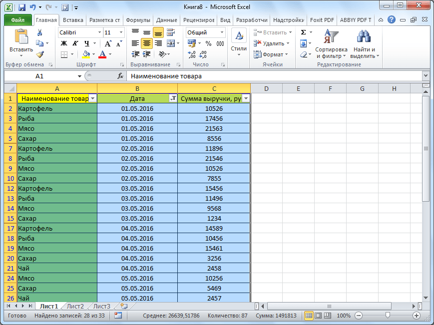 Как видим, после этого, все пустые строки исчезли, так как они были отфильтрованы.