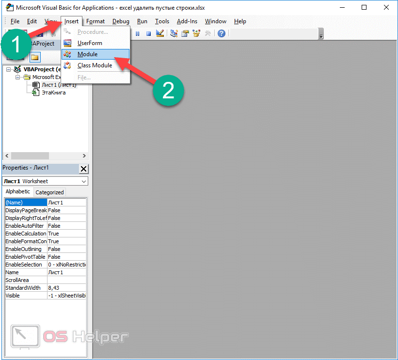 Чтобы удалить незаполненные строки в Excel с помощью макроса, вам нужно вставить код VBA в свою книгу.