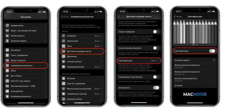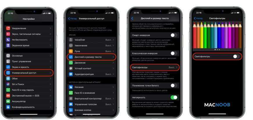 Для этого перейдите в «Настройки», откройте Универсальный доступ → Дисплей и размер текста → Светофильтры и деактивируйте ползунок.