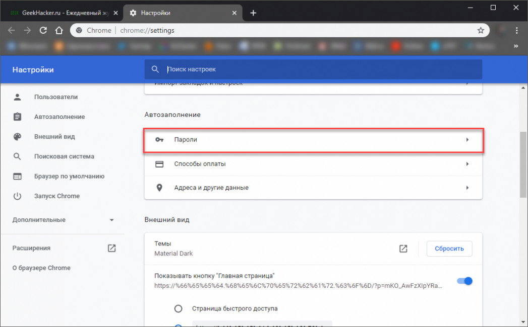 - Отключить автозаполнение паролей в Google Chrome;