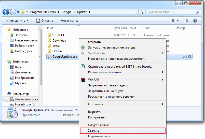 и находим там файл GoogleUpdate.exe. Этот файл нужно удалить.