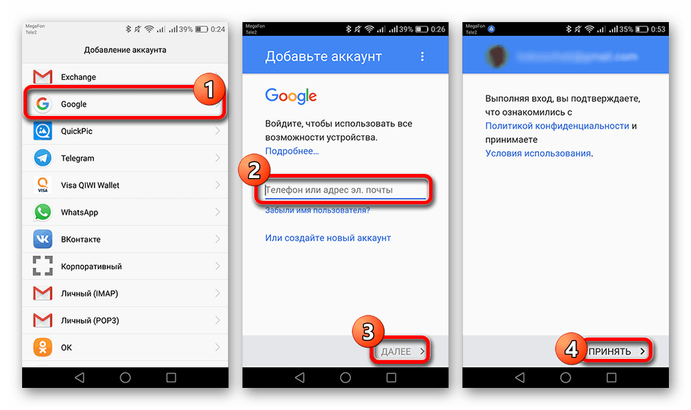 Обратите внимание, после регистрации нового аккаунта сразу через внутренние параметры телефона не потребуется добавление учетной записи. В таком случае можете сразу переходить к завершающему шагу или, если нужно, решению некоторых проблем