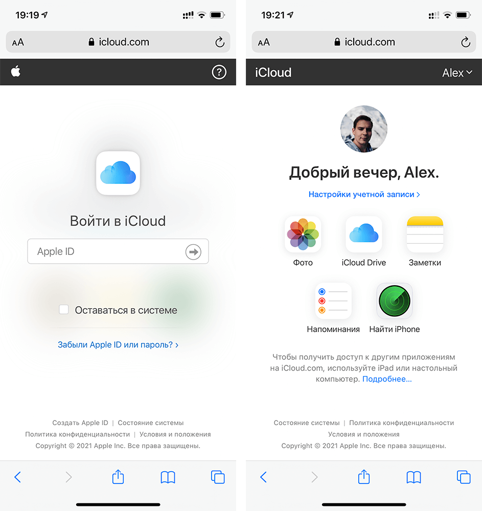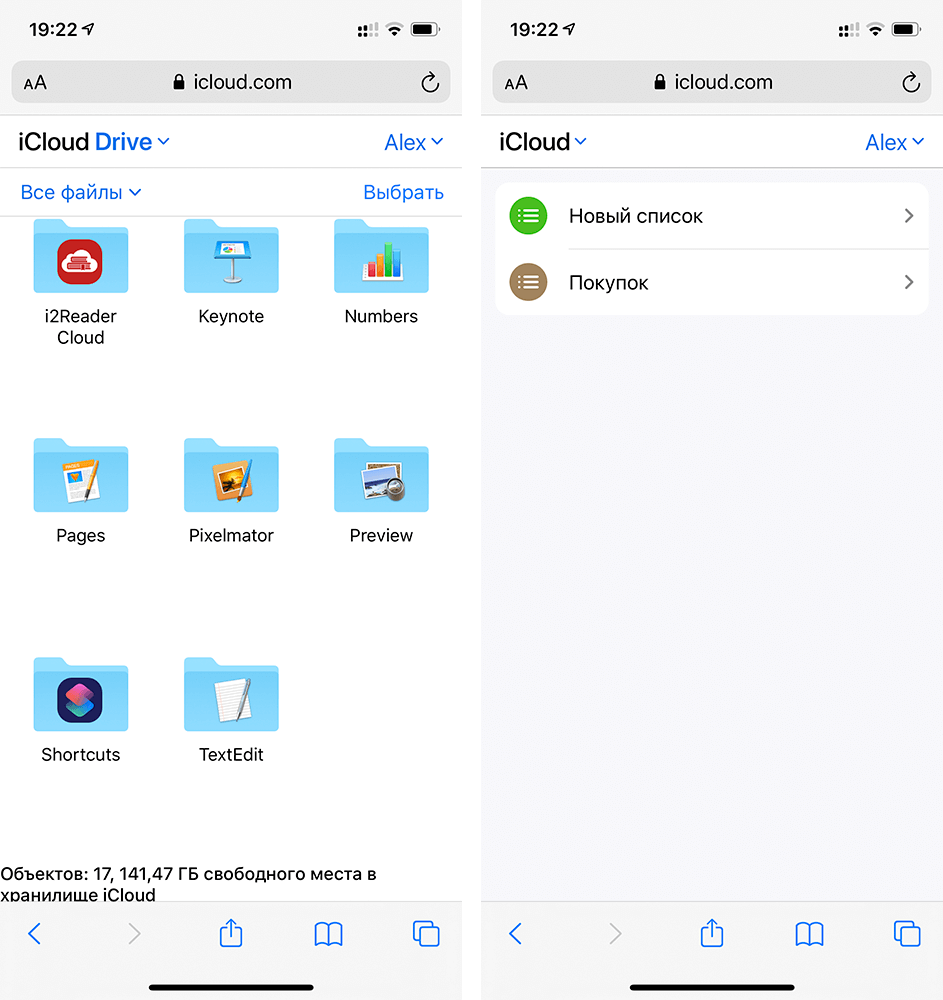В фотографиях можно посмотреть все снимки, которые вы когда-либо выгружали в iCloud, в iCloud Drive доступно содержимое приложения «Файлы». А Заметки, Напоминания и Найти iPhone являются упрощенными версиями встроенных приложений в iOS.
