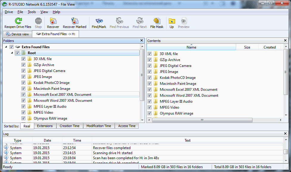 В данном окне нас интересует строчка EXTRA FOUND FILES и мы кликаем по ней левой кнопкой мыши 2 раза, чтобы открыть ее и переходим в следующий интерфейс
