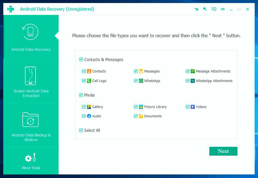 Данное программное обеспечение восстанавливает не только телефонные контакты, но и видео, фотографии, текстовые сообщения и даже журнал вызовов. После установки приложения вы можете указать конкретный тип информации, который необходимо найти, а после использовать либо быстрое сканирование, либо углубленное.