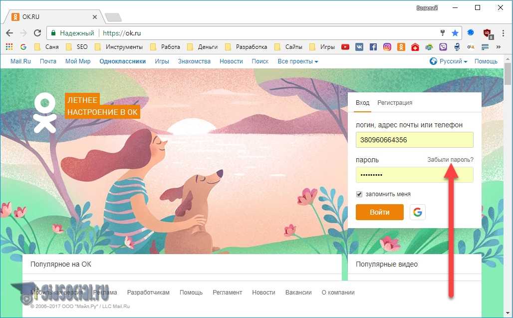 Теперь опишем процесс восстановления доступа к Одноклассникам через номер телефона.