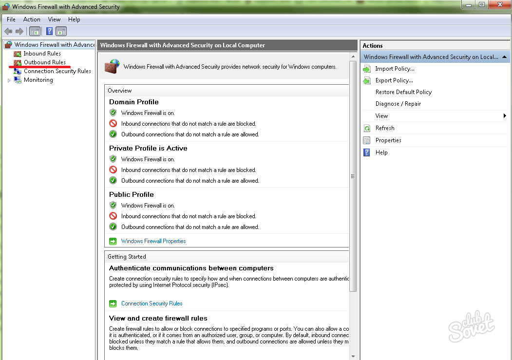 Блокирование исходящих соединений посредством встроенного брандмауэра