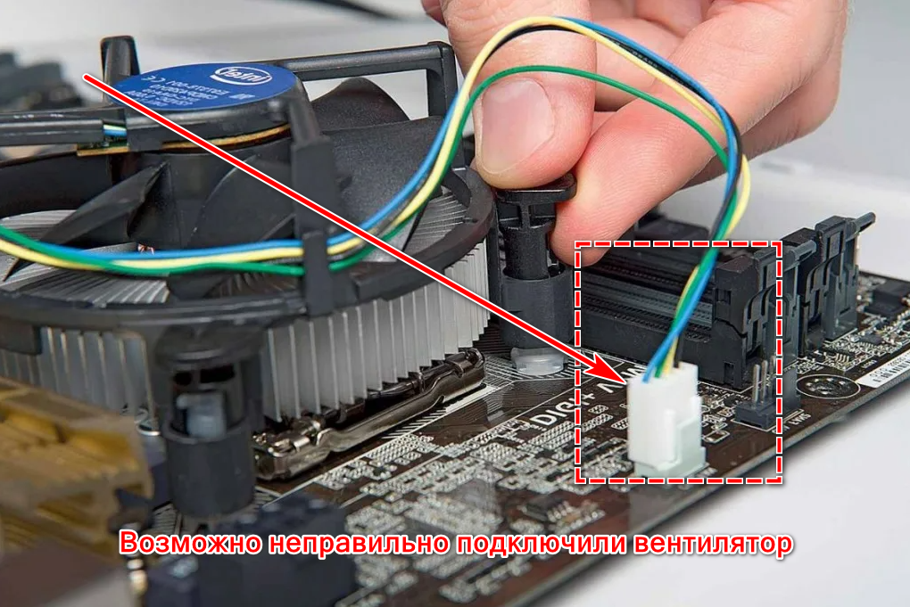 - Пользователь производил чистку системного блока, заменял, подключал новое оборудование. В моменте могли быть задеты разъемы, согнуты контакты процессора (если он извлекался из гнезда), кулер неправильно подсоединен.