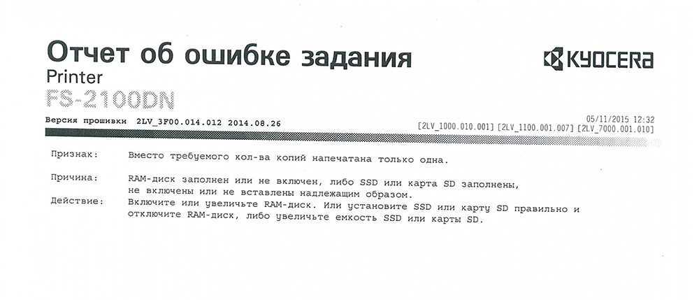 Всем доброе утро. Вчера попал в очень неприятную ситуацию, когда у нас в офисе было собрание, а на этом собрании мною были предоставлен ноутбук и новенький принтер Kyocera 2100DN и во время собрании директор попытался напечатать 20 копий одностраничного документа что бы раздать собравшимся, но что принтер посылал его говоря что нехватка памяти и он сможет распечатать только один документ, и при печати один листок петатался норм, а второй выходил с описанием ошибки: