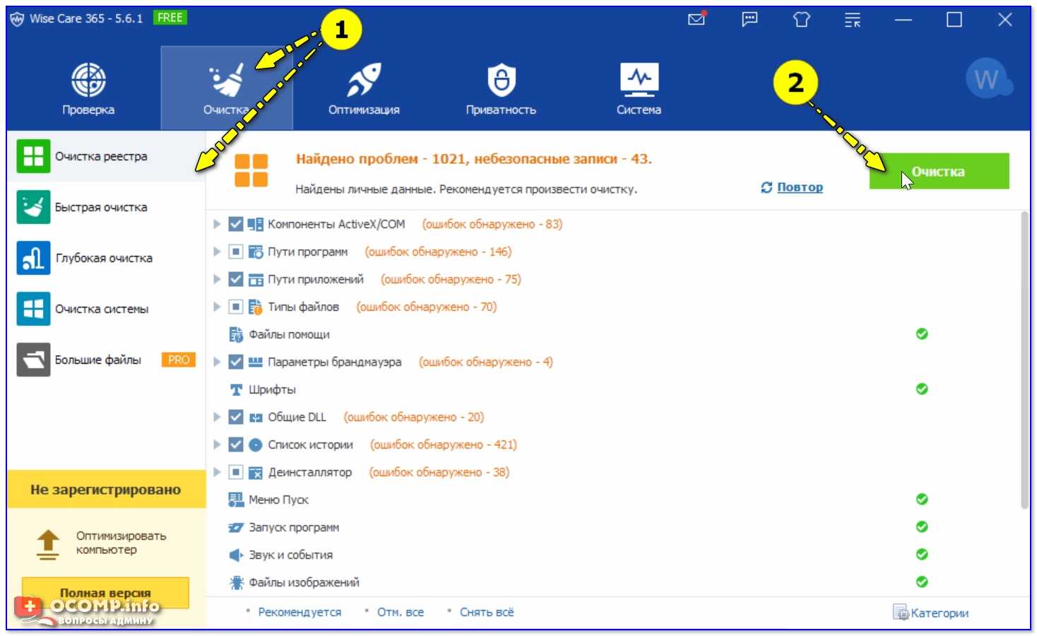 Мощная и многофункциональная программа для комплексного обслуживания разнообразных версий Windows: Xp, 7, 8, 8.1, 10. Несмотря на то, что в ее комплексе есть утилиты для очистки диска, удаления программ, ускорения ОС, задания тонких настроек и пр. — все же, основное ее направление — это работа с реестром (по крайней мере, с этим она справляется лучше всего, на мой взгляд ).