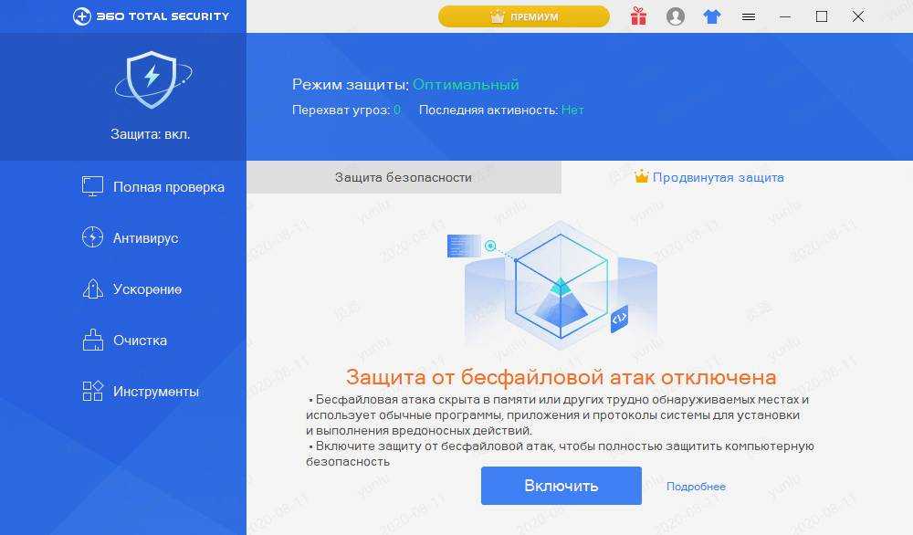 Бесплатная версия. Это полноценная программа, сделанная на основе сразу пяти антивирусных «движков». В бесплатной версии есть активная защита от проникновений, онлайн-проверка открываемых ссылок и файлов из интернета, большое сканирование компьютера на вирусы и сервис блокировки перехвата паролей.