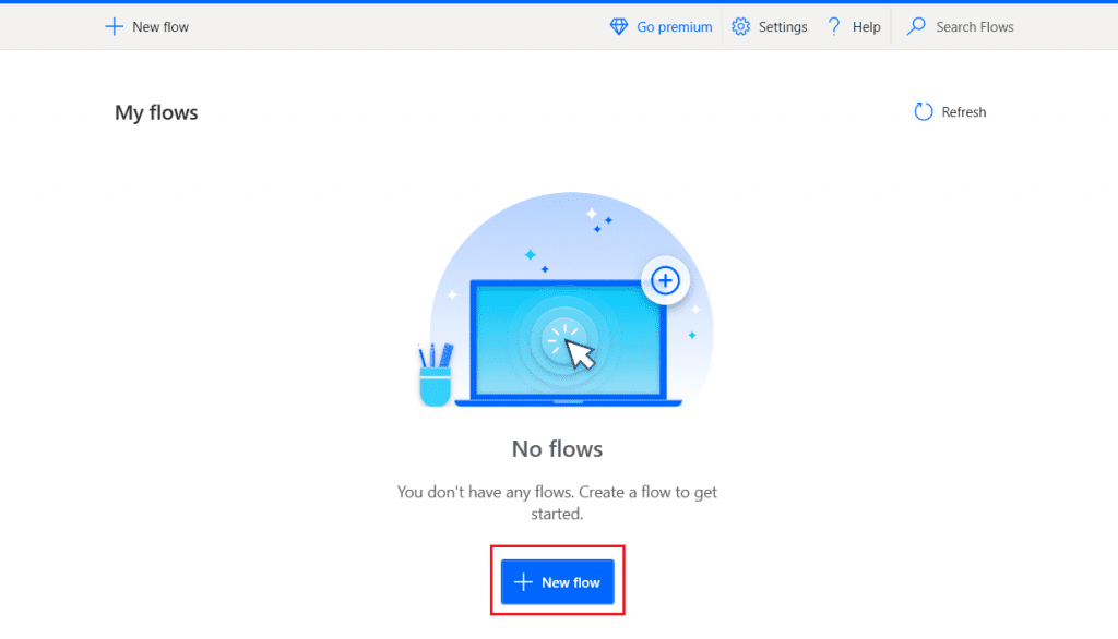 To create a Flow, click on the New Flow icon in the Power Automate Desktop.