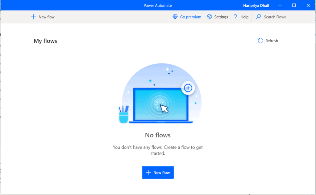 Here we will see how to create a Flow in the Power automate Desktop.