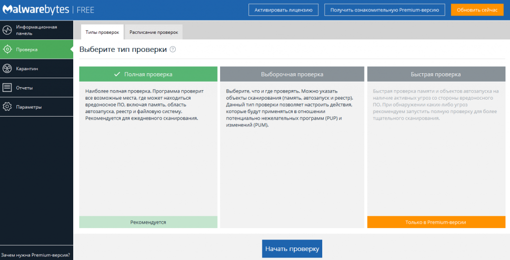 Выбираете пункт «Проверка», кликаете по кнопке «Начать проверку».