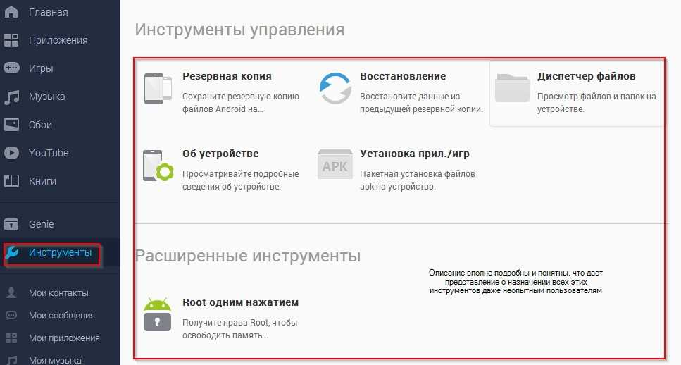 Mobogenie позволяет комфортно и оперативно управлять гаджетом, включая: