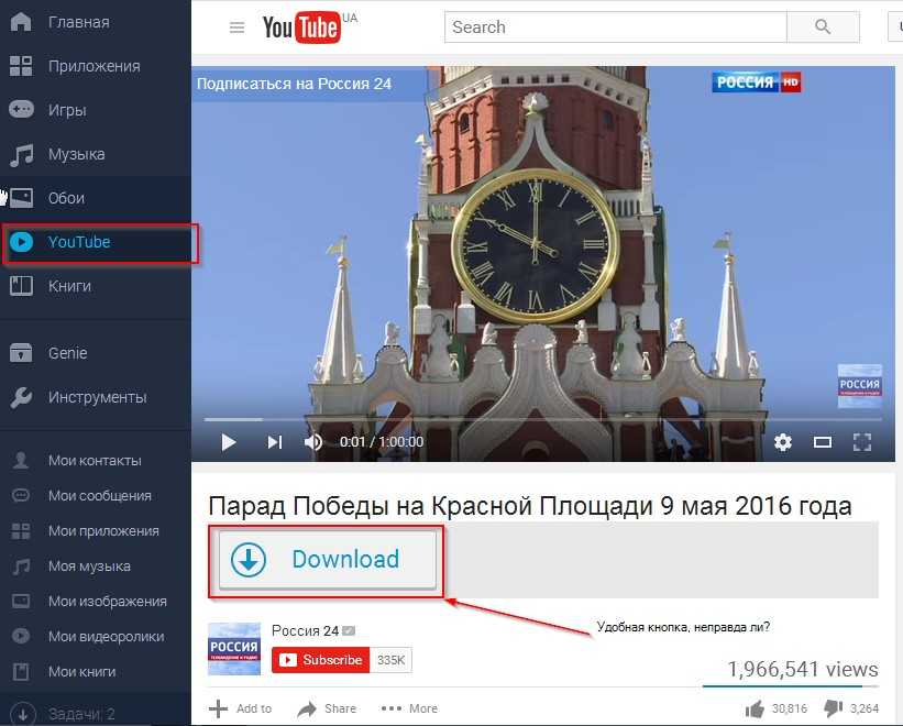 А при просмотре роликов на YouTube их сразу же можно скачать при помощи удобной (и крупной) кнопки.