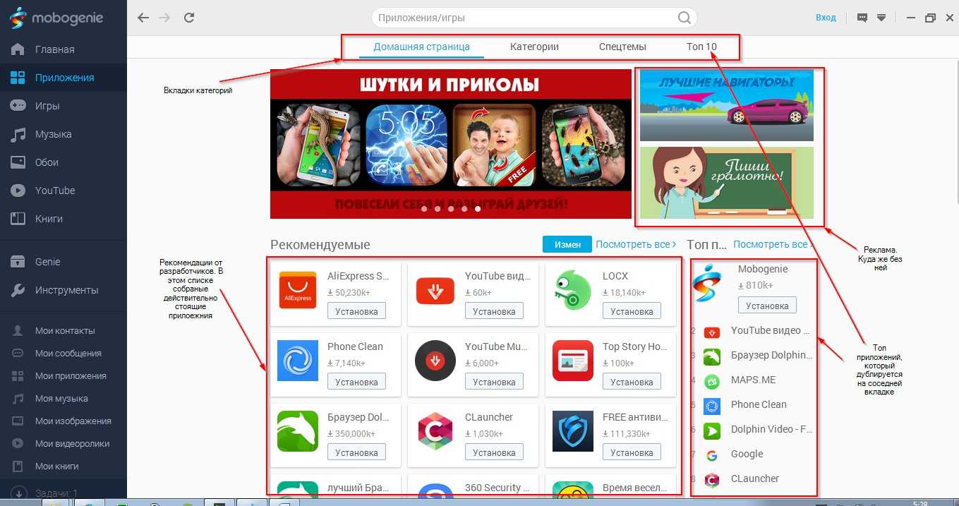 Основной проблемой для тех, кто хотел бы загружать приложения из магазина Mobogenie является сложность со скачиванием и установкой этого магазина на устройство Android. В Play Market его нет, а скачивать с каких-либо сторонних сайтов категорически не рекомендуется. Единственным выходом остаётся скачать программу с официального сайта разработчика и установить через исполняемый EXE-файл для Windows или APK-файл для Android.