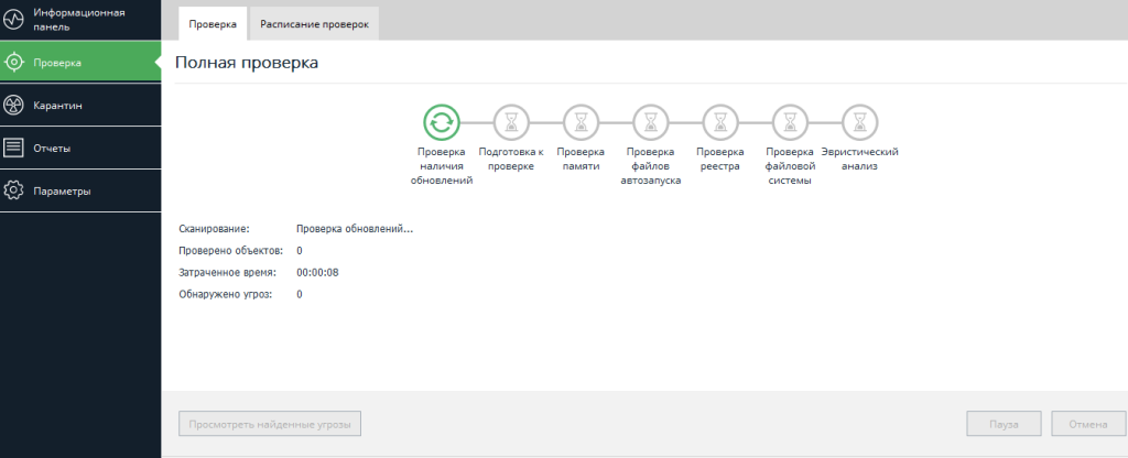 Утилита начинаете проверять операционную систему на предмет заражения различными рекламными вирусами.