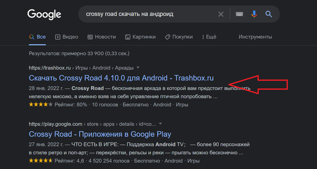 ШАГ 1. Найдите APK файл в интернете на своём ПК. Сделать это можно при помощи запроса по типу «*название игры* скачать на андроид». После чего перейдите на сайт. Обычно самые популярные сайты появляются в первых строках.