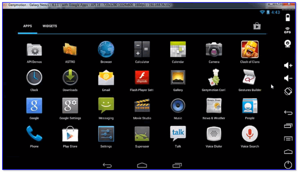 Виртуальная студия для андроид Genymotion Desktop оснащена большим выбором виджетов и датчиков, которыми можно как угодно манипулировать, имитируя любую реальную ситуацию или заданный сценарий: местоположение пальцев на экране, отправка смс, снятие трубки вызова, проверка работы сети, скорость загрузки и т.д.