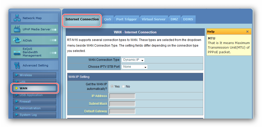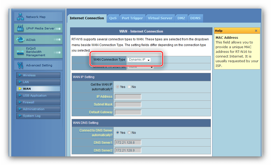 Это главная подстройка, которая позволит роутеру принимать и отправлять трафик вашему провайдеру. Она потребует детальную информацию о подключении к интернету.