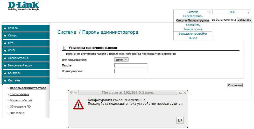 На этом основная настройка роутера D-Link dir 300 заканчивается и для корректного завершения и сохранения параметров следует выбрать пункт «Система», расположенный вверху справа, а в открытом диалоге нажать кнопку «Сохранение и Перезагрузка».
