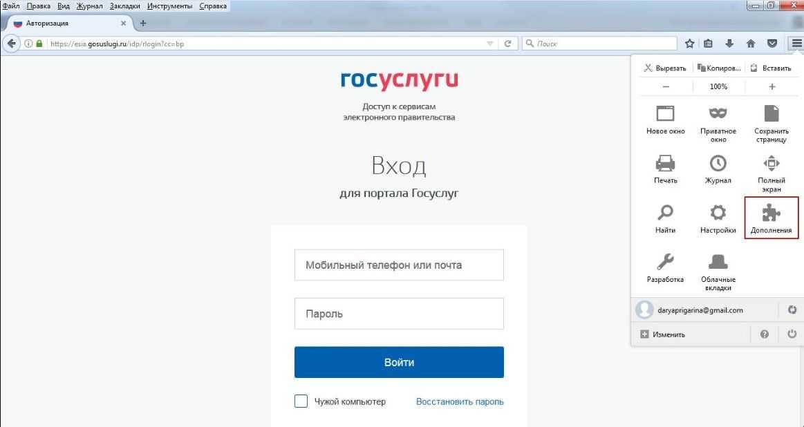 Плагин госуслуги firefox корректно работает с Mozilla Firefox версии от 50.0. Чтобы добавить и активировать плагин госуслуги для firefox, нужно: