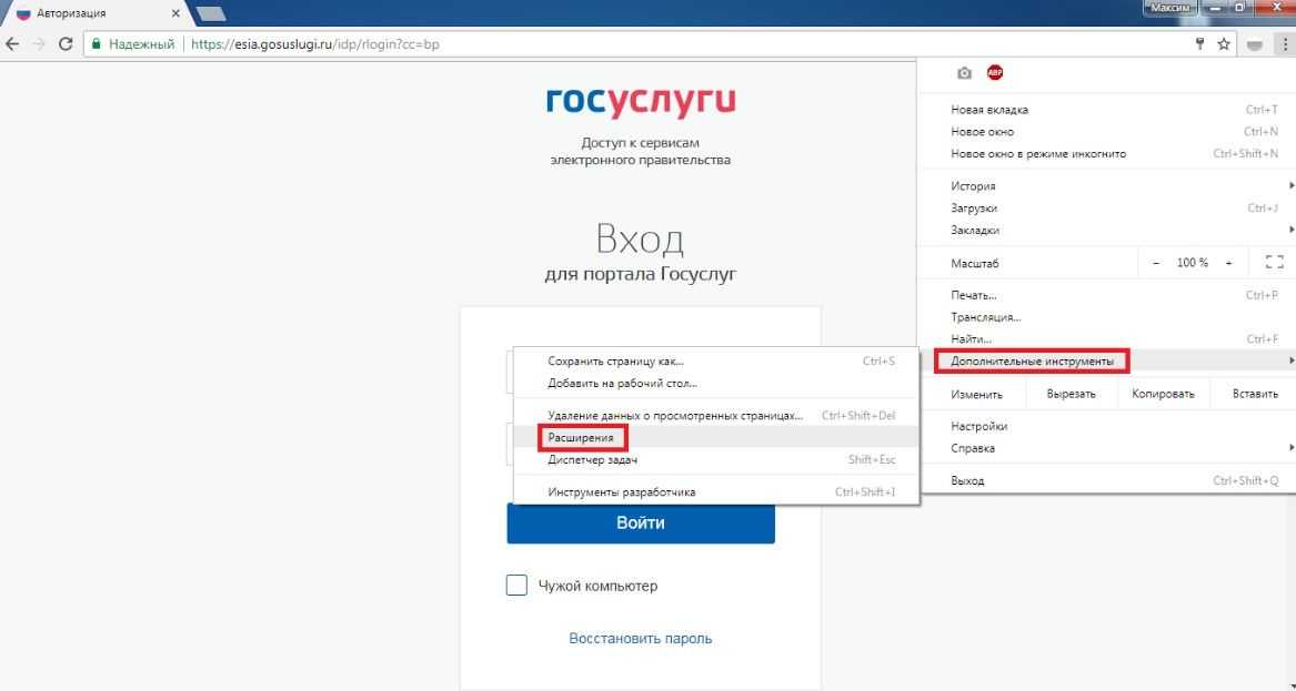 После этого необходимо настроить расширение для плагина Госуслуг для Google Chrome и другого браузера. В зависимости от веб-проводника алгоритм действий может отличаться.