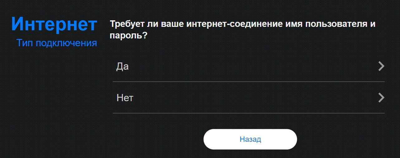 Если Вы выбрали пункт PPPoE, PPTP или L2TP — Вас попросят ввести «Имя пользователя» и «Пароль» на подключение к провайдеру: