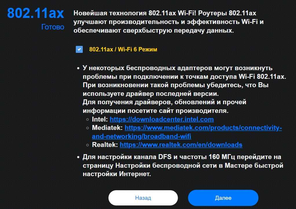 Для пользователей роутеров с поддержкой AX продолжаем настройку, так как пропустить мастер нельзя:
