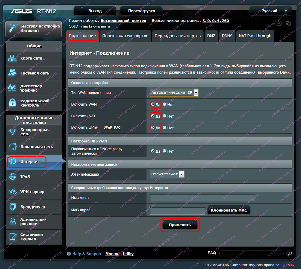 Создание Интернет-соединения на ASUS RT-N12 D1