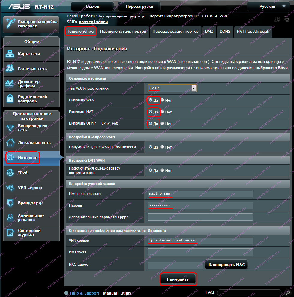 Настройка роутера Asus RT-N12 для провайдера «Билайн»