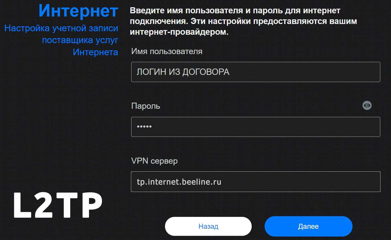 Действия могут отличаться (всё зависит от конкретного провайдера), но общий принцип остаётся одинаковым. Единственная разница состоит в типе используемого соединения (для Билайн — L2TP).