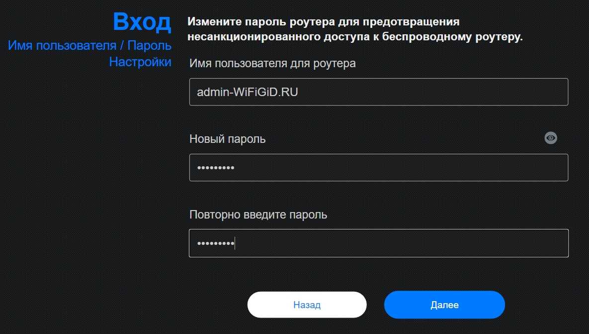 Роутер попросит у вас указать имя пользователя и пароль для доступа к настройкам (который вы задали в процессе настройки).